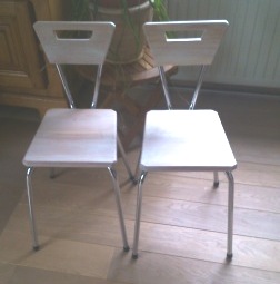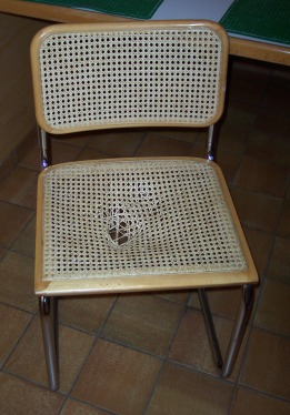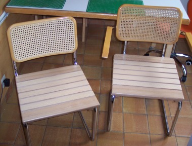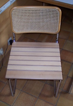 ...gevlochten zitting vervangen door massief beuken latten. |