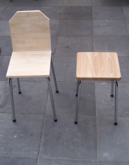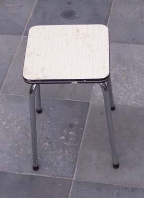 | Een taboretje waarbij de zit beschadigd is... |