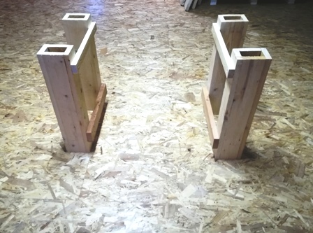poten van elk 21cm gemaakt waartussen het rubberwood blad werd gemonteerd.