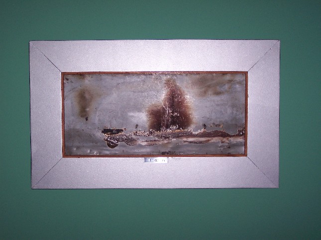 Verweerd zinkafval van dakbedekkingen en -goten wordt kunst. Puur door selectie vertelt dit bouwafval een origineel verhaal. | ![]() Het landschap, met zicht op zee |